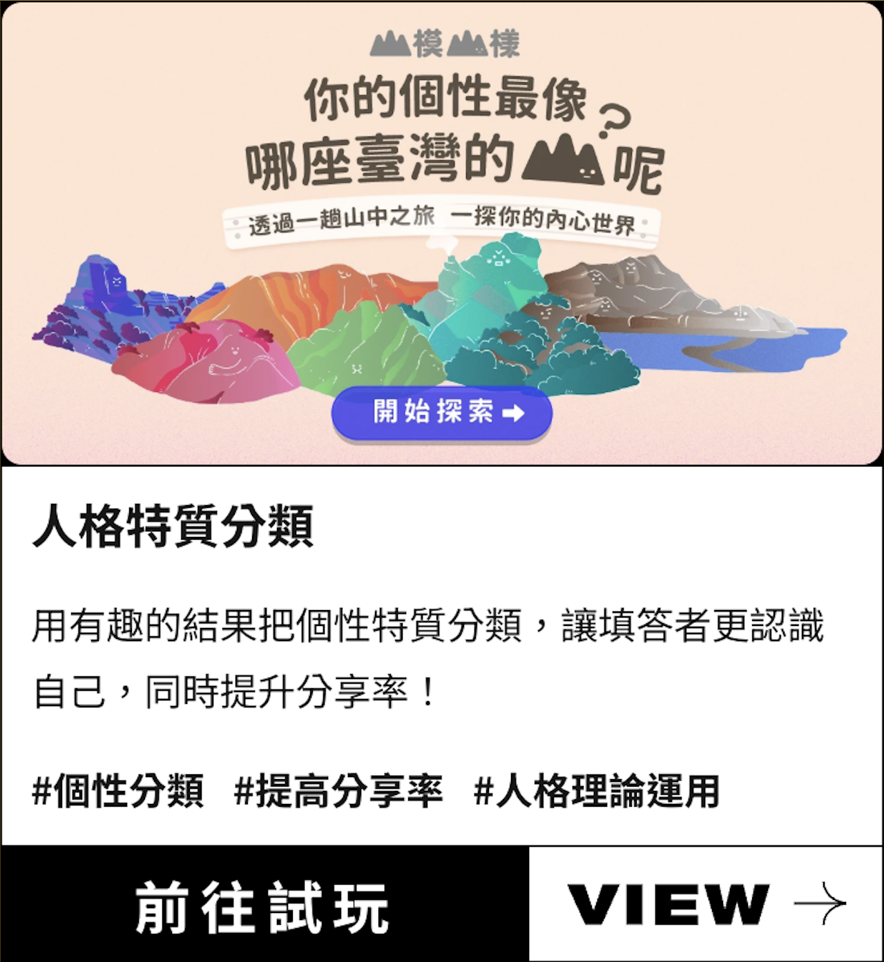 光是發出合作詢問,對 RE:LAB 就已經是很大的鼓勵!為了感謝你的肯定,我們準備了一份禮物要送給你——「超開放實驗室 | 問卷 X 心理測驗 X 互動遊戲|快速產生器」回饋抵用券,記得收信領取優惠代碼!這是 RE:LAB 2023 年最新開發的線上工具,讓不會程式的行銷夥伴也能快速產出有趣的「互動問卷/測驗/遊戲」,高度客製化的視覺與流暢的互動體驗大獲好評,操作簡單又直覺,邀請你免費註冊來玩玩看!總共有29種範本,讓你套用。也有AI功能讓你3分鐘生成心理測驗內容!